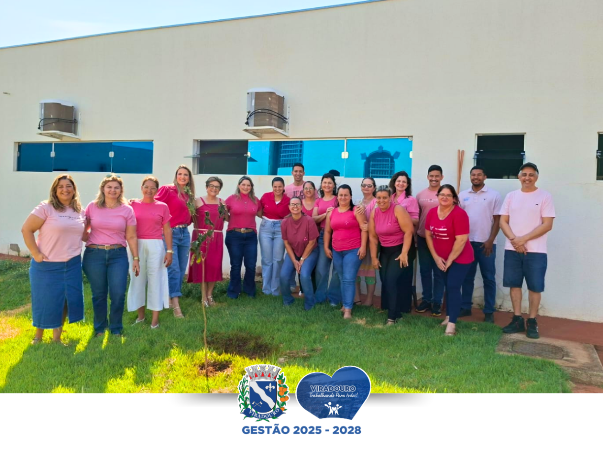Neste mês dedicado à conscientização sobre o câncer de mama, a Secretaria Municipal da Educação realizou o plantio simbólico de uma árvore, representando vida, esperança e renovação.
