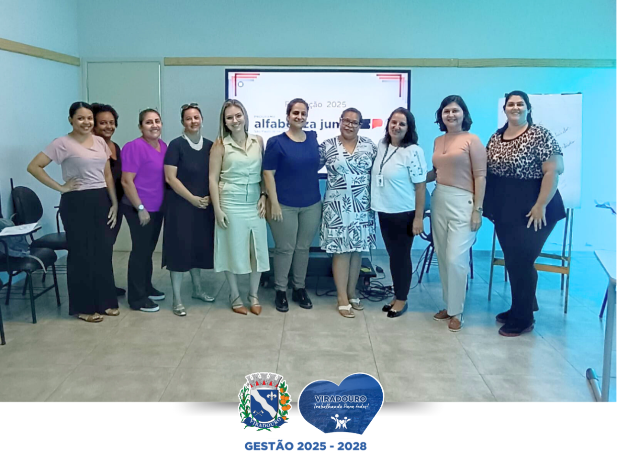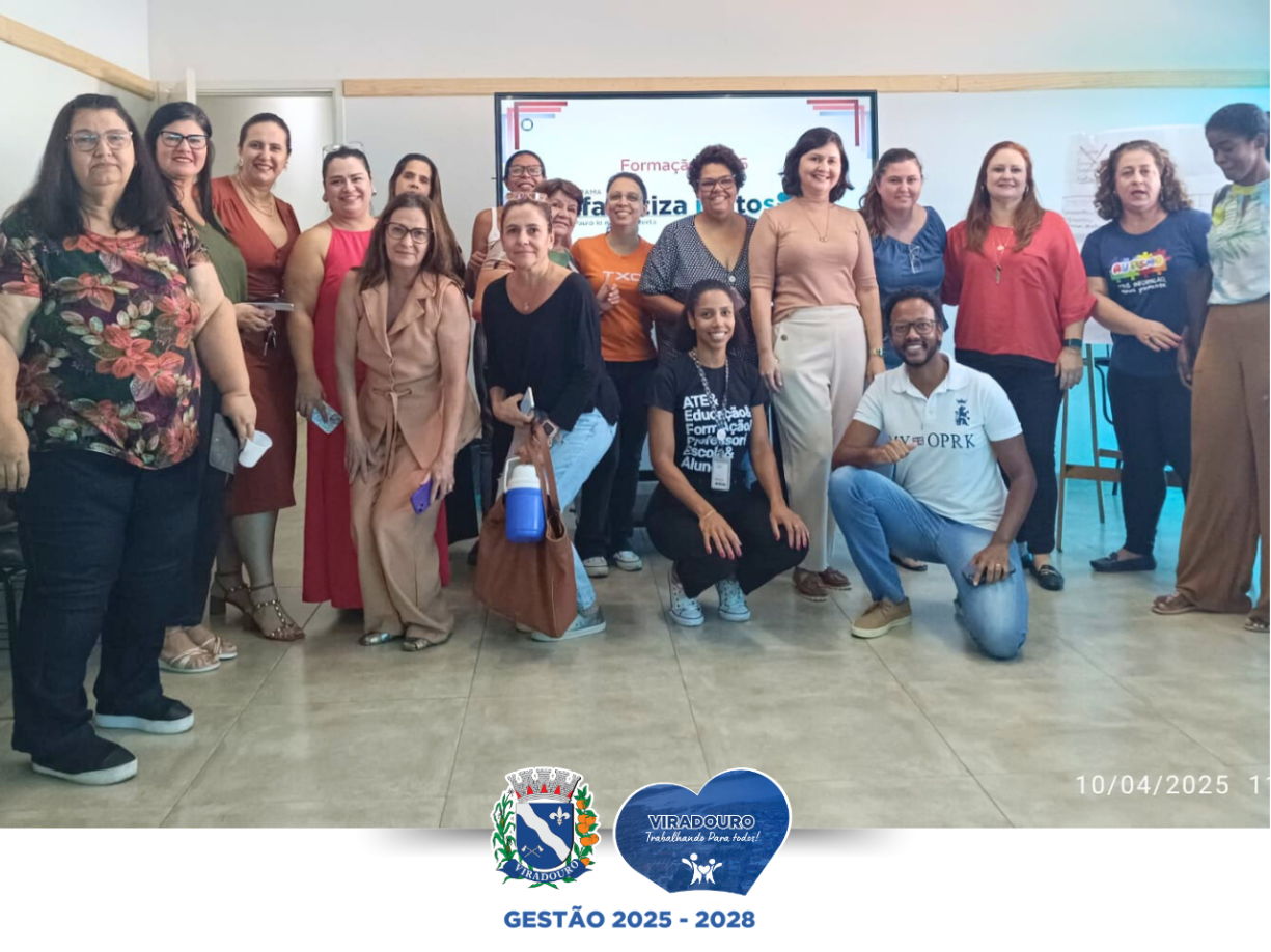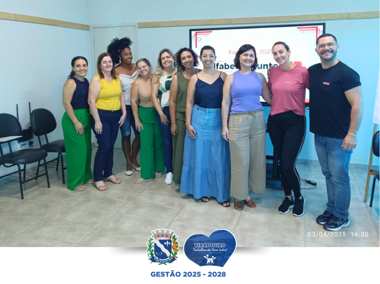 Viradouro/SP - 22/04/2025: Durante o mês de abril, a Secretaria Municipal da Educação de Viradouro promoveu o 1º Encontro Formativo – Módulo 1 do programa Alfabetiza Juntos 2025. A ação marca o início de uma importante jornada de formação continuada para gestores e professores dos anos iniciais do Ensino Fundamental, reafirmando o compromisso do município com a alfabetização plena de todas as crianças até o 2º ano escolar.